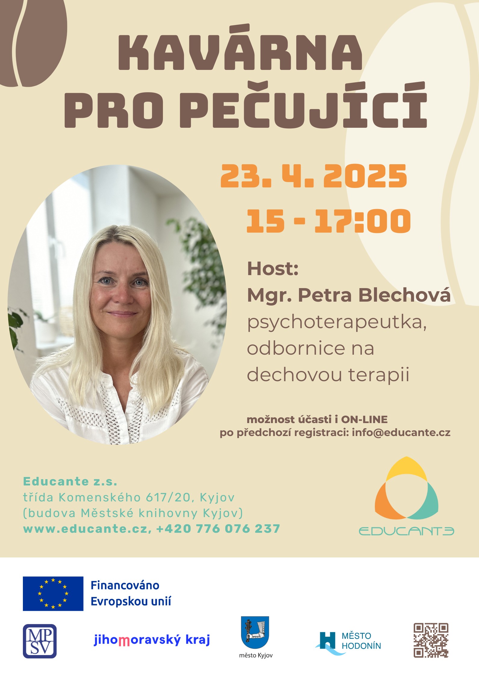 Pečujete doma a chcete se odreagovat? Zveme vás na příjemné neformální povídání s Liduškou Kloudovou a hostem Mgr. Petrou Blechovou, psychoterapeutkou a odbornicí na dechovou terapii.